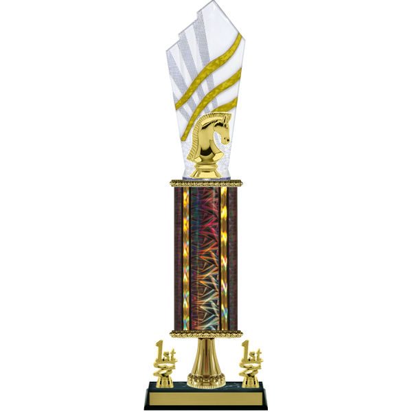 Stylish figure on column & trophy base with diamond backer, accented riser and trim.