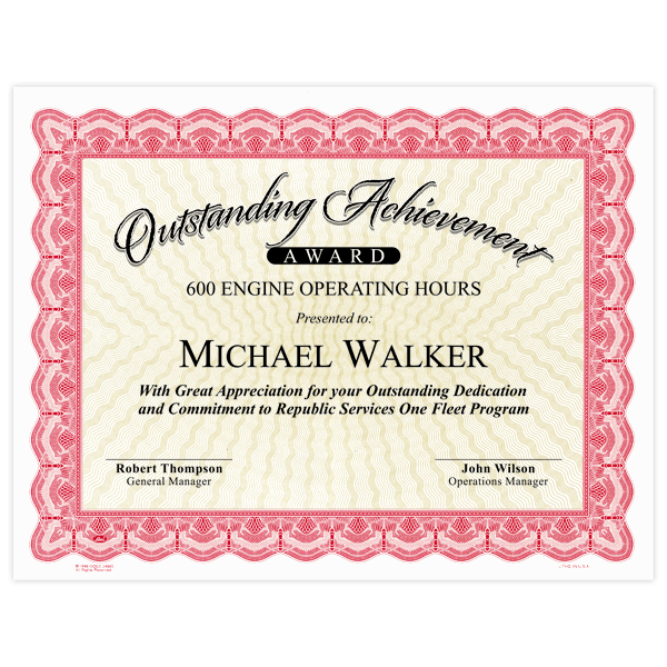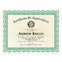 8-1/2" X 11" Certificate available in various colors.