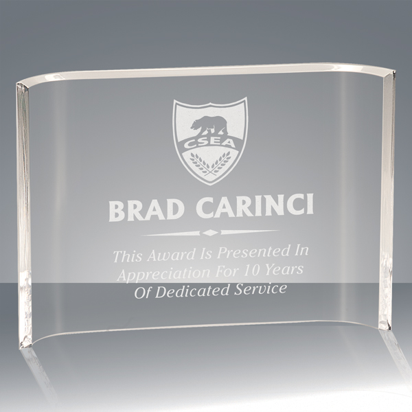 Excellent crescent award! This acrylic stands on its own with its unique curved ends.