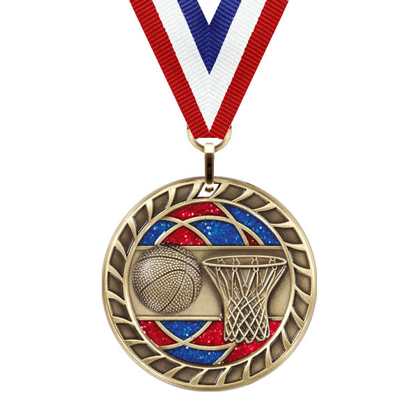 2-1/2"die cast medal with Translucent Color Fill and Glitter. Also included with each medal