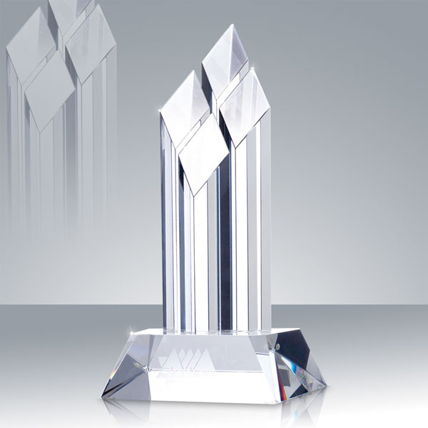 Optical Crystal with precise lines create this enduring award. A quartet of diamond headed spires creates a feeling of towering success, excellence and achievement.