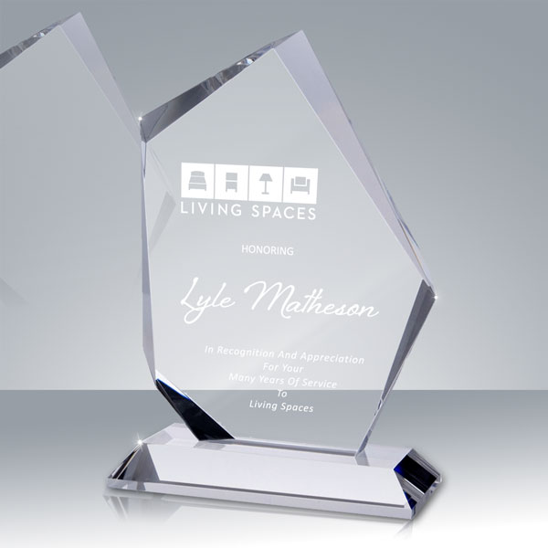 These 3/4" thick optic crystal awards are perfectly suited for either large text or logo personalization, and with the large bevels creating a modern shape this is one award that will be remembered forever.