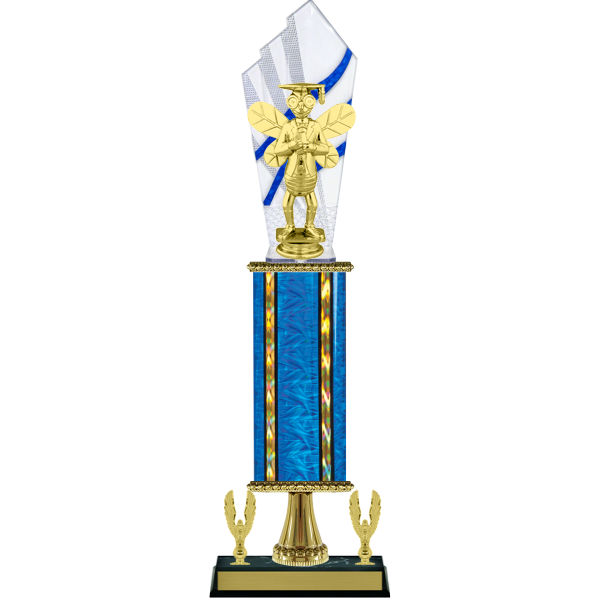 Stylish figure on column & trophy base with diamond backer, accented riser and trim.