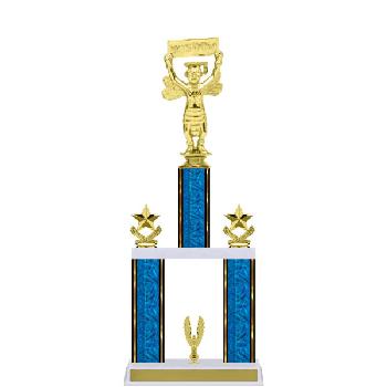 Stylish figure on two tier column structure & trophy base with trim. This twin circular column trophy is available in 3 heights.