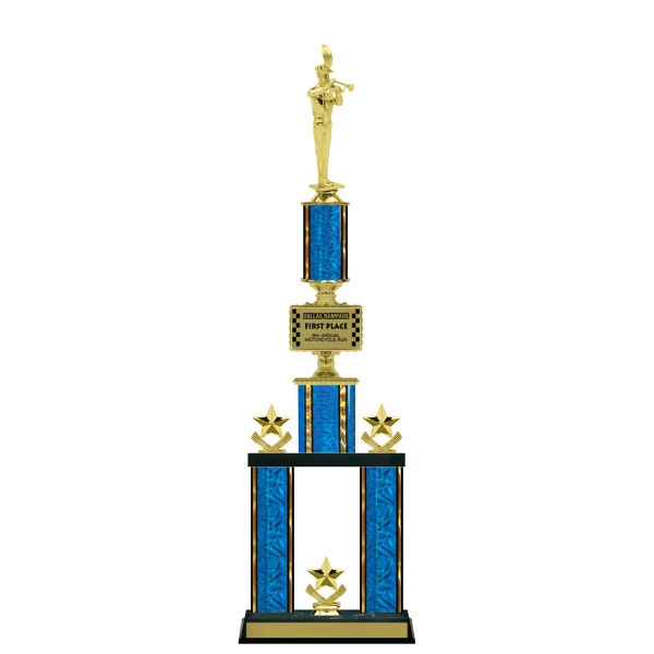 This Stylish Trophy features a standard 2"x3-1/2" Dash plate area with inscription included along with the inscription on the base.
