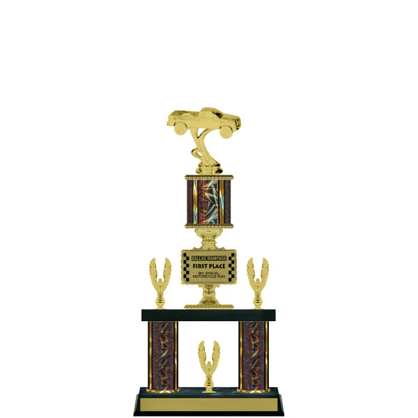 This Stylish Trophy features a standard 2"x3-1/2" Dash plate area with inscription included along with the inscription on the base.